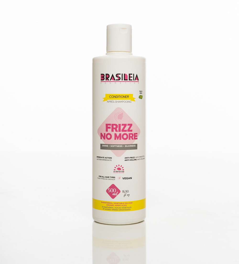 Après avoir lavé les cheveux, éliminez l’excès d’eau et appliquez l’après-shampooing Frizz No More en massant les cheveux soigneusement. Rincez bien. Pour des résultats encore meilleurs, nous recommandons l’utilisation des autres produits de la gamme Frizz No More de BRASILEIA COSMETICS.